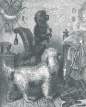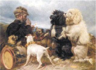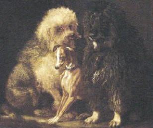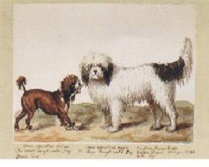 Schilderijen en tekeningen van 1700 en 1800 geven al diverse voorbeelden aan van Parti Poedels (Harlekijn Poedels).